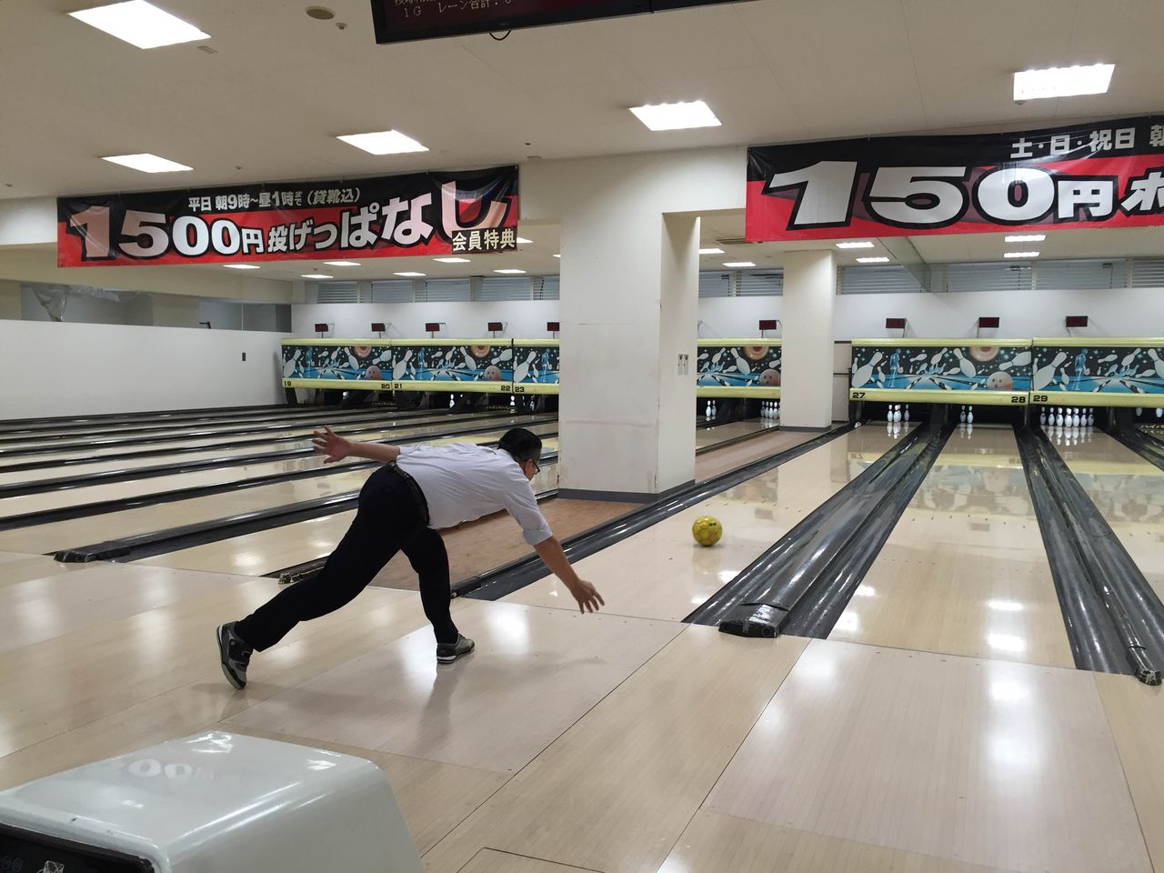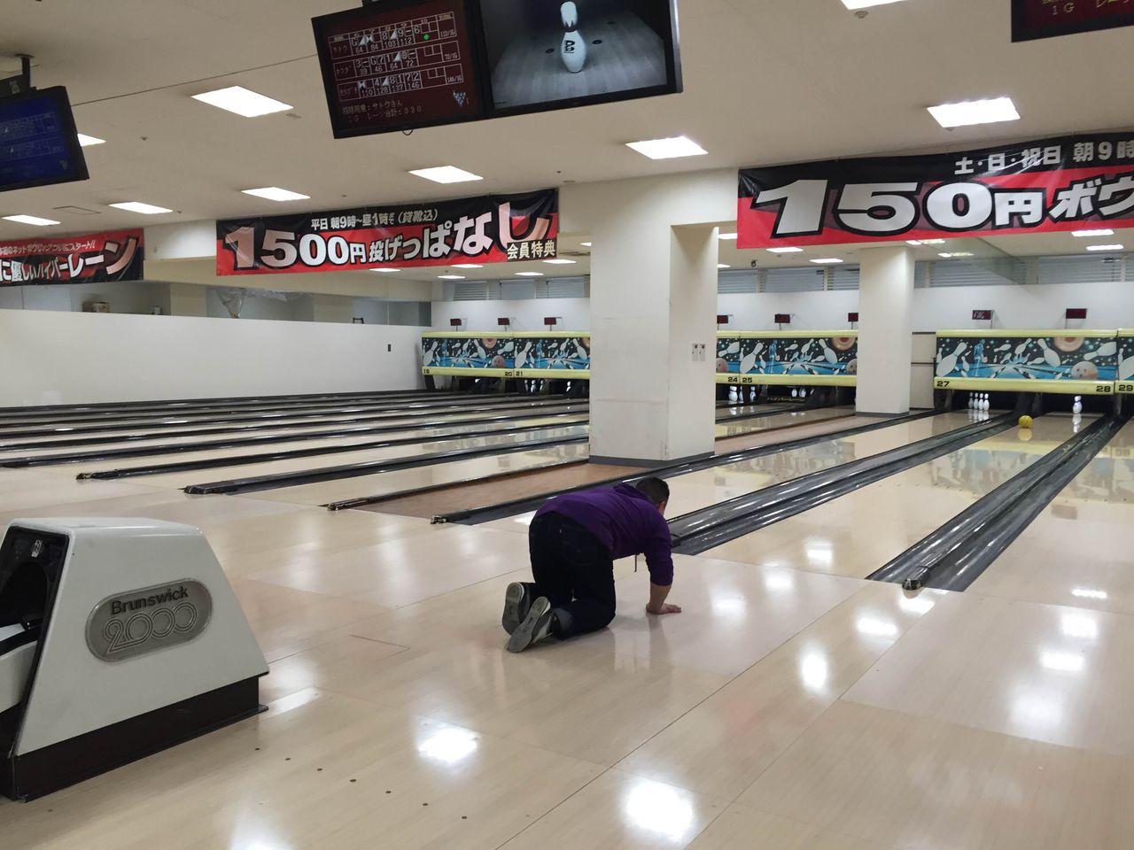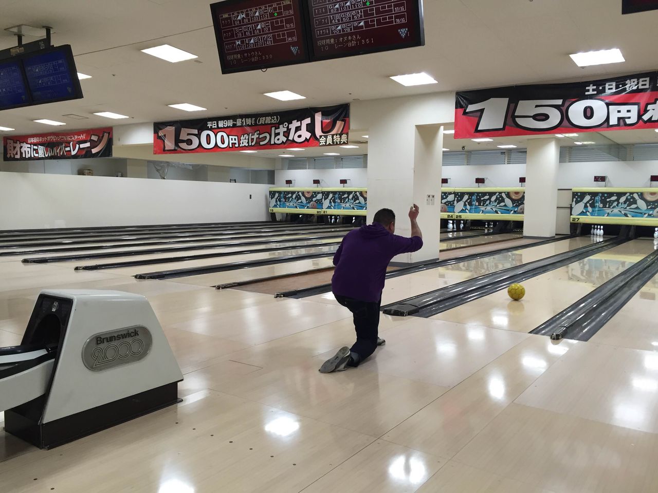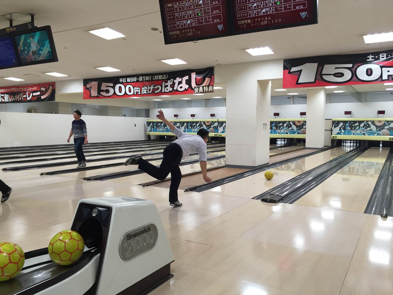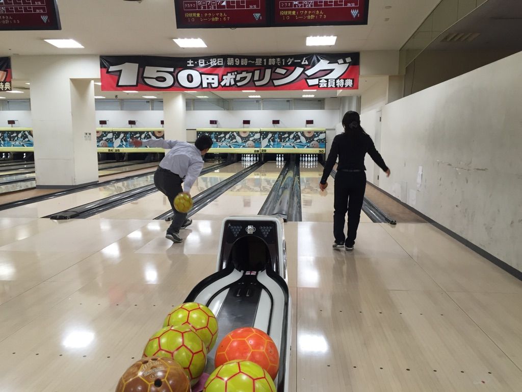 ボーリング前にガッツリ体力温存ですね