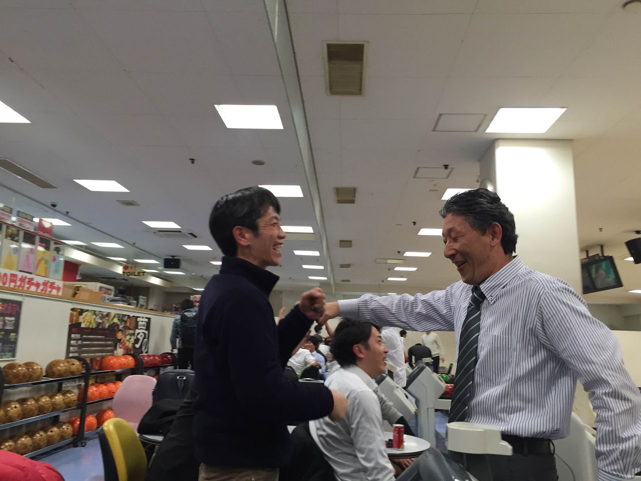 ボーリングはチーム戦で行いました!