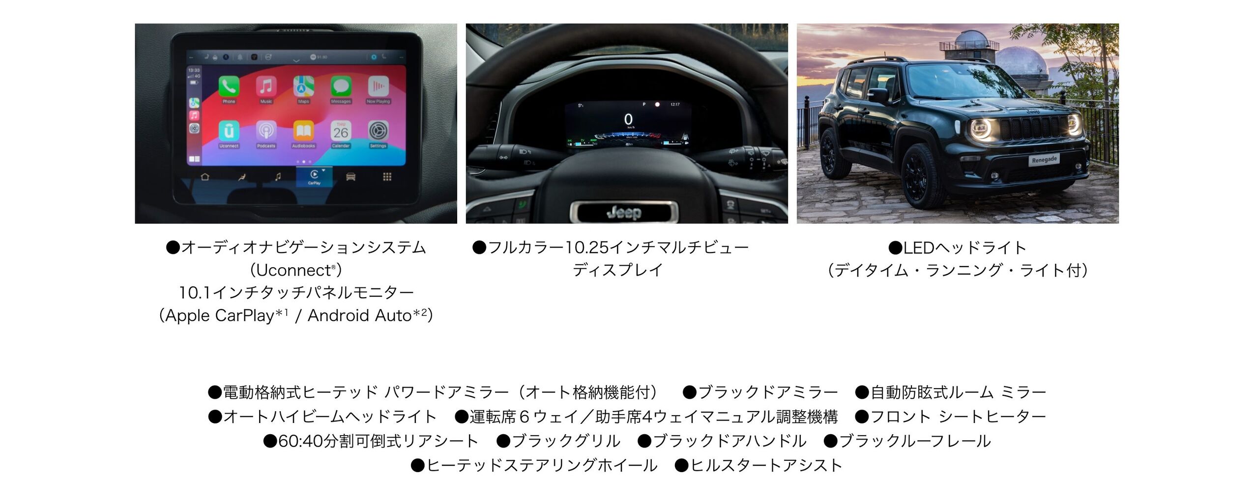 202512月3 レネゲードノーススターエディション こんにちは!いつもjeep池袋のブログをご覧頂きありがとうございます😊本日は皆様におすすめ情報のお知らせです💫ハイブリッド車として生まれ変わった注目度の高いレネゲード、、限定車が追加リリースされますおすすめポイントの一つサンルーフ付きモデルですハンドル位置は「右」となりますサンルーフ付き定価5,603,000円のところ Renegade North Star Edition 希望販売価格 ¥5,470,000-全国限定 150台 ボディーカラー : テクノグリーンメタリックC/Cその他の特徴といたしましてブラックペイントルーフフードデカール&専用バッジブラックアルミ&バッジもちろんLEDライトや大きくなったインフォメーション画面もそのままにファブリックシートになっているところが価格差の調整面ではございますが意外と革シートよりもお好きな方も多いですこちらの発表・発売に伴い12月13日(土)~14日(日)にRenegade North Star Fairを開催いたします!!公式サイトにてクーポンを申し込みいただきフェア期間中に商談・ご試乗していただいた方にはJEEP オリジナルカレンダー 2026をプレゼント!!数に限りはございます2026年、jeepは85周年を迎えますオリジナルカレンダーと共に85周年の特別な12ヶ月をぜひ皆様にも楽しんでいただきたいのです!皆様のご予約を心よりお待ちしております!